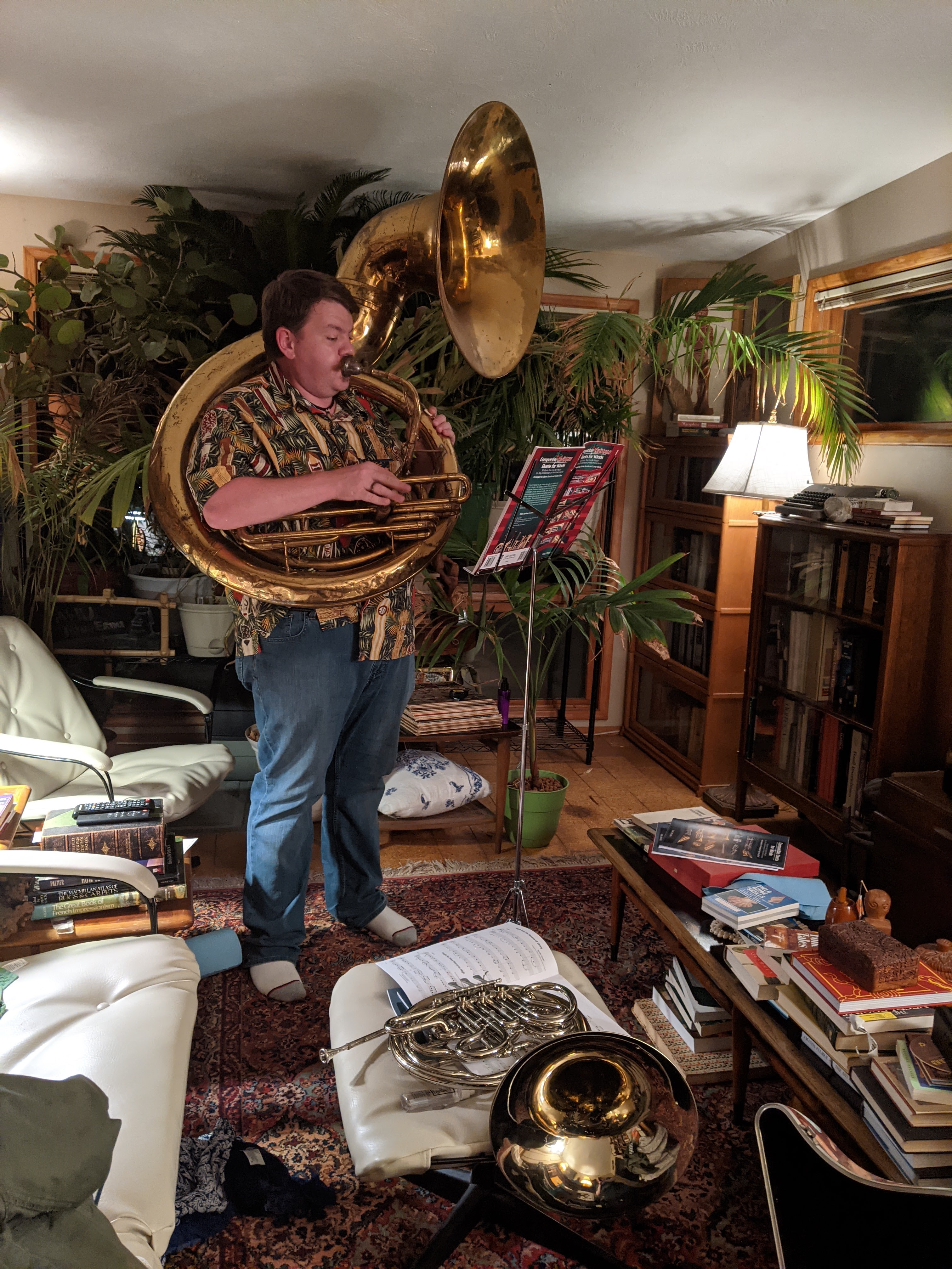 After dinner, we adjourned to the library, where we took a crack at the Christmas duet books I bought for Horn and Tuba (Erik and I hatched a potentially-crazy plan of Brass Christmas Caroling). Erik needs a deeper refresher on Tuba and music theory before we can get off the ground, but it felt good to have the project of “make music together”.